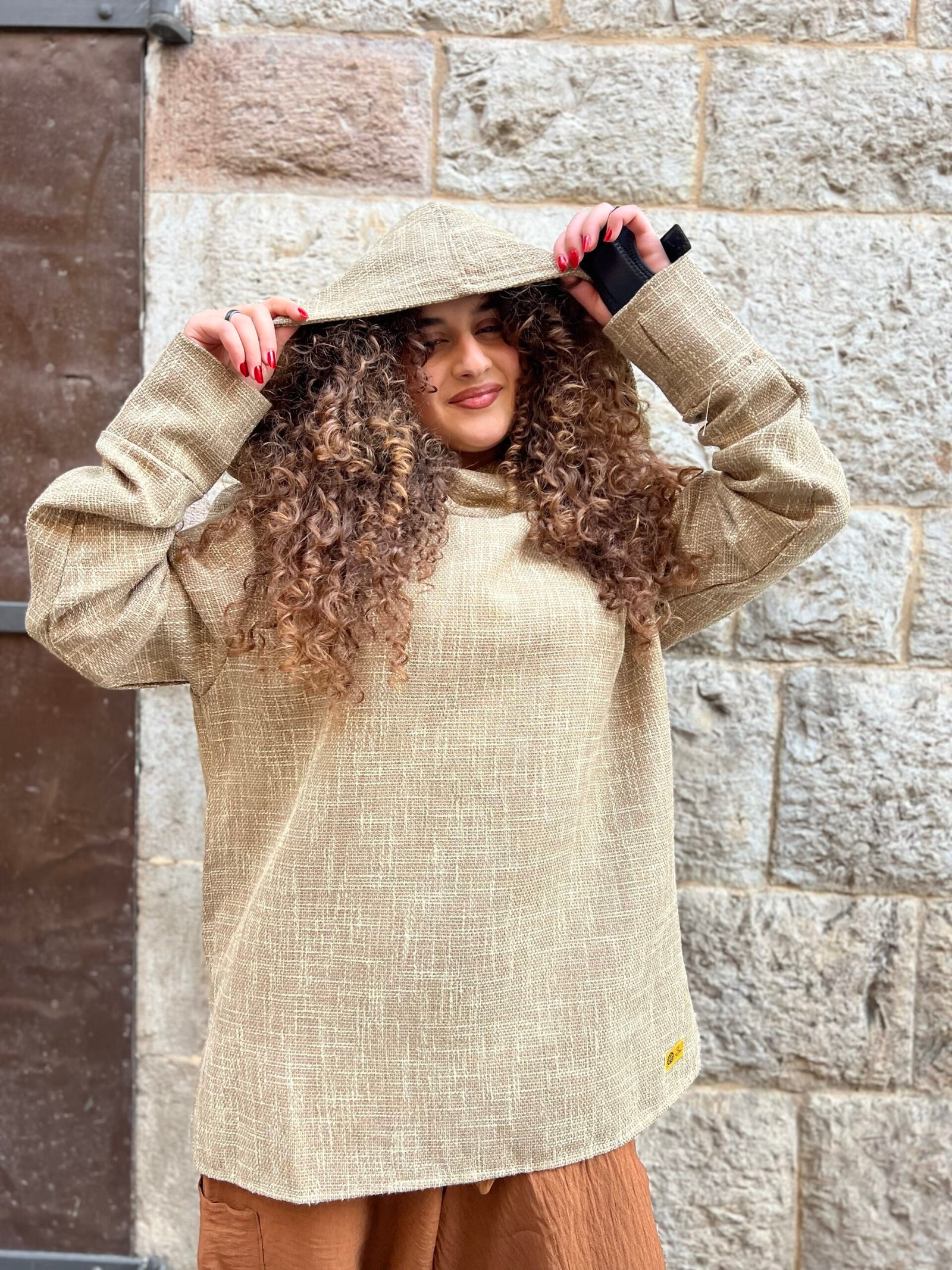 The Elemental Spirit Hoodie – Sandstone Edition is crafted in a warm beige tone inspired by sun-kissed desert stone and natural earth textures.